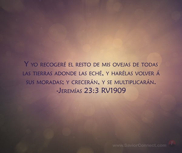 Y yo recogeré el resto de mis ovejas de todas las tierras adonde las eché, y harélas volver á sus moradas; y crecerán, y se multiplicarán. -Jeremías 23:3 RV1909