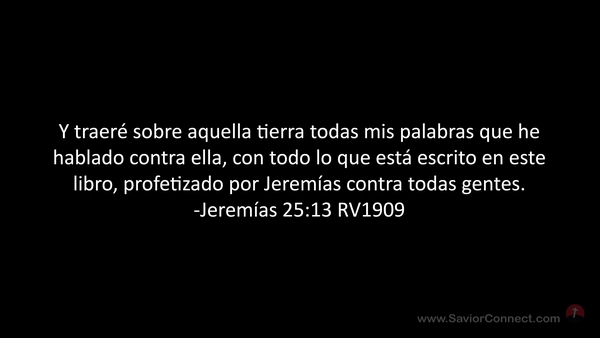 Y traeré sobre aquella tierra todas mis palabras que he hablado contra ella, con todo lo que está escrito en este libro, profetizado por Jeremías contra todas gentes. -Jeremías 25:13 RV1909
