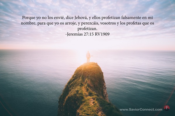 Porque yo no los envié, dice Jehová, y ellos profetizan falsamente en mi nombre, para que yo os arroje, y perezcáis, vosotros y los profetas que os profetizan. -Jeremías 27:15 RV1909