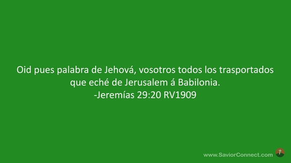 Oid pues palabra de Jehová, vosotros todos los trasportados que eché de Jerusalem á Babilonia. -Jeremías 29:20 RV1909