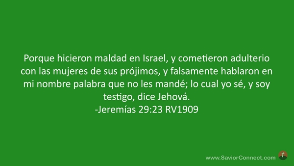 Porque hicieron maldad en Israel, y cometieron adulterio con las mujeres de sus prójimos, y falsamente hablaron en mi nombre palabra que no les mandé; lo cual yo sé, y soy testigo, dice Jehová. -Jeremías 29:23 RV1909
