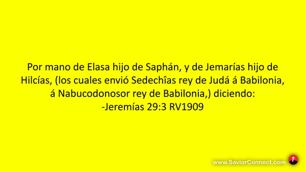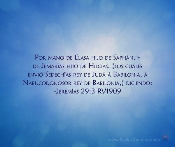 Por mano de Elasa hijo de Saphán, y de Jemarías hijo de Hilcías, (los cuales envió Sedechîas rey de Judá á Babilonia, á Nabucodonosor rey de Babilonia,) diciendo: -Jeremías 29:3 RV1909