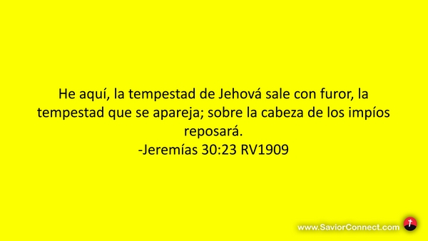 He aquí, la tempestad de Jehová sale con furor, la tempestad que se apareja; sobre la cabeza de los impíos reposará. -Jeremías 30:23 RV1909