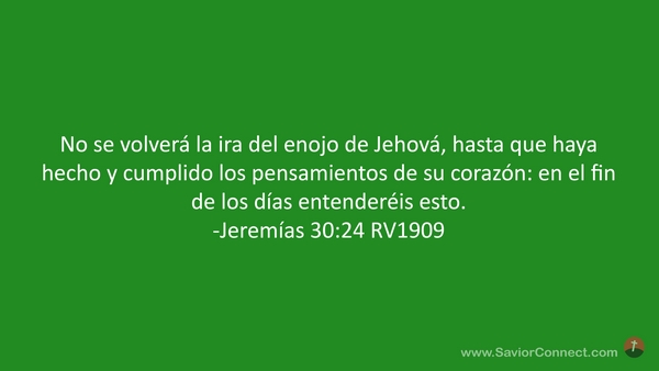 No se volverá la ira del enojo de Jehová, hasta que haya hecho y cumplido los pensamientos de su corazón: en el fin de los días entenderéis esto. -Jeremías 30:24 RV1909