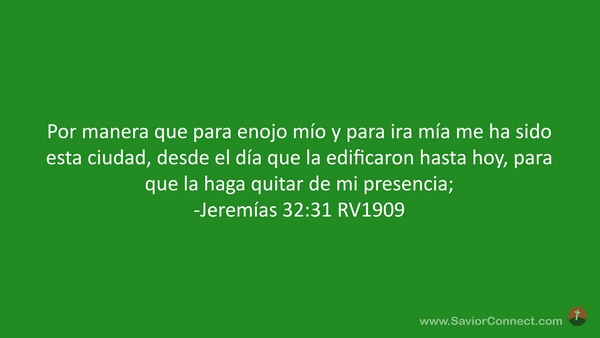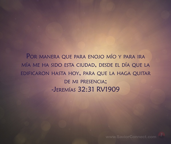 Por manera que para enojo mío y para ira mía me ha sido esta ciudad, desde el día que la edificaron hasta hoy, para que la haga quitar de mi presencia; -Jeremías 32:31 RV1909