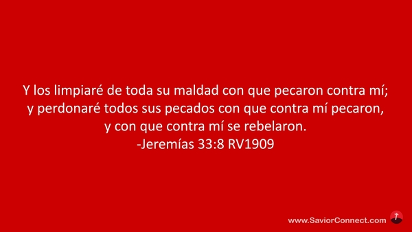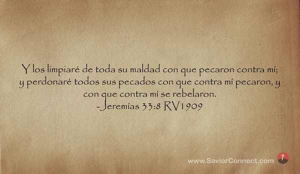Y los limpiaré de toda su maldad con que pecaron contra mí; y perdonaré todos sus pecados con que contra mí pecaron, y con que contra mí se rebelaron. -Jeremías 33:8 RV1909