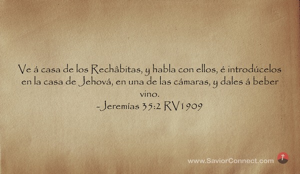 Ve á casa de los Rechâbitas, y habla con ellos, é introdúcelos en la casa de Jehová, en una de las cámaras, y dales á beber vino. -Jeremías 35:2 RV1909