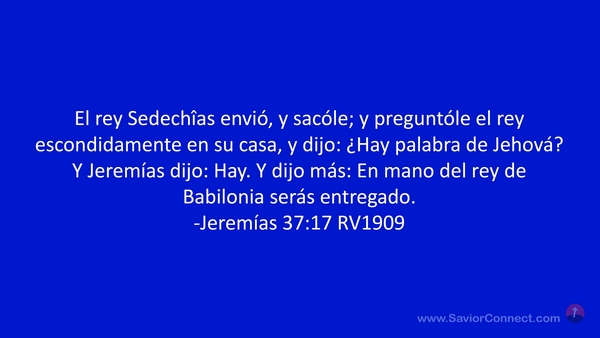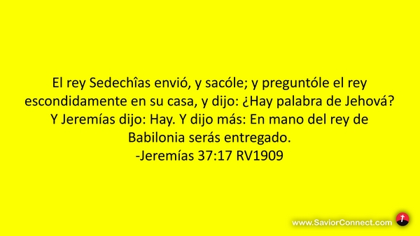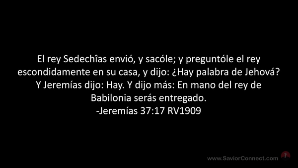 El rey Sedechîas envió, y sacóle; y preguntóle el rey escondidamente en su casa, y dijo: ¿Hay palabra de Jehová? Y Jeremías dijo: Hay. Y dijo más: En mano del rey de Babilonia serás entregado. -Jeremías 37:17 RV1909