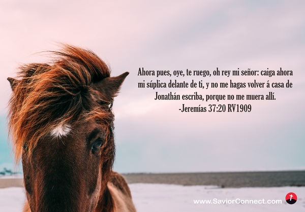 Ahora pues, oye, te ruego, oh rey mi señor: caiga ahora mi súplica delante de ti, y no me hagas volver á casa de Jonathán escriba, porque no me muera allí. -Jeremías 37:20 RV1909