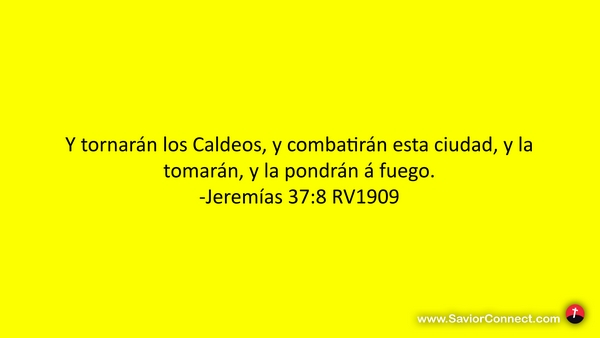Y tornarán los Caldeos, y combatirán esta ciudad, y la tomarán, y la pondrán á fuego. -Jeremías 37:8 RV1909