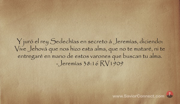 Y juró el rey Sedechîas en secreto á Jeremías, diciendo: Vive Jehová que nos hizo esta alma, que no te mataré, ni te entregaré en mano de estos varones que buscan tu alma. -Jeremías 38:16 RV1909
