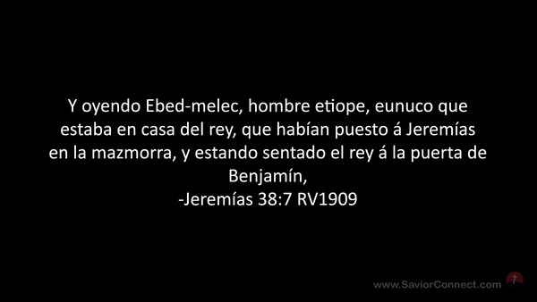 Y oyendo Ebed-melec, hombre etiope, eunuco que estaba en casa del rey, que habían puesto á Jeremías en la mazmorra, y estando sentado el rey á la puerta de Benjamín, -Jeremías 38:7 RV1909