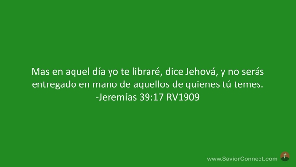 Mas en aquel día yo te libraré, dice Jehová, y no serás entregado en mano de aquellos de quienes tú temes. -Jeremías 39:17 RV1909