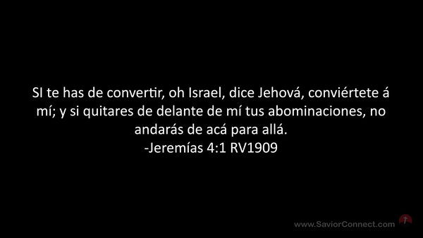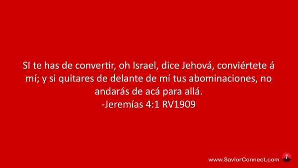 SI te has de convertir, oh Israel, dice Jehová, conviértete á mí; y si quitares de delante de mí tus abominaciones, no andarás de acá para allá. -Jeremías 4:1 RV1909