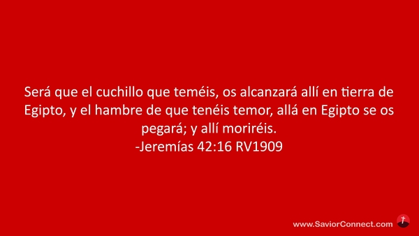 Será que el cuchillo que teméis, os alcanzará allí en tierra de Egipto, y el hambre de que tenéis temor, allá en Egipto se os pegará; y allí moriréis. -Jeremías 42:16 RV1909