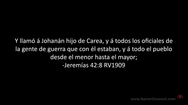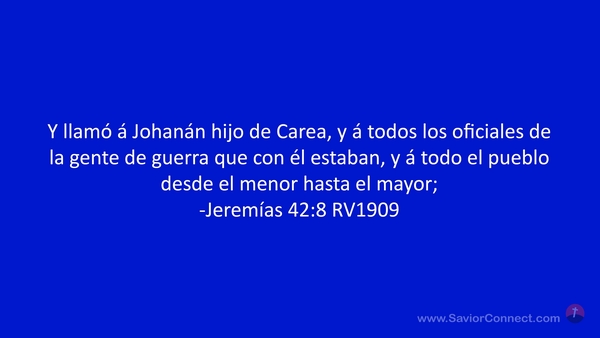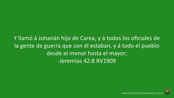 Y llamó á Johanán hijo de Carea, y á todos los oficiales de la gente de guerra que con él estaban, y á todo el pueblo desde el menor hasta el mayor; -Jeremías 42:8 RV1909