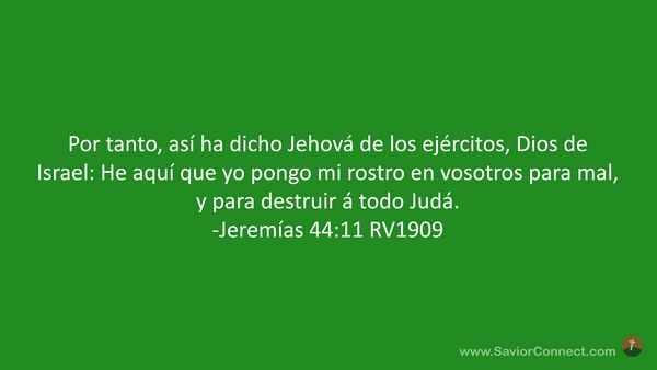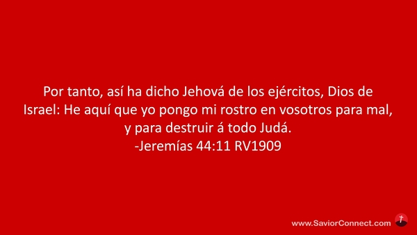 Por tanto, así ha dicho Jehová de los ejércitos, Dios de Israel: He aquí que yo pongo mi rostro en vosotros para mal, y para destruir á todo Judá. -Jeremías 44:11 RV1909