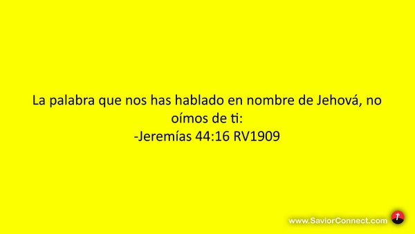 La palabra que nos has hablado en nombre de Jehová, no oímos de ti: -Jeremías 44:16 RV1909