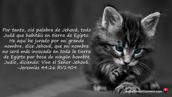 Por tanto, oid palabra de Jehová, todo Judá que habitáis en tierra de Egipto: He aquí he jurado por mi grande nombre, dice Jehová, que mi nombre no será más invocado en toda la tierra de Egipto por boca de ningún hombre Judío, diciendo: Vive el Señor Jehová. -Jeremías 44:26 RV1909