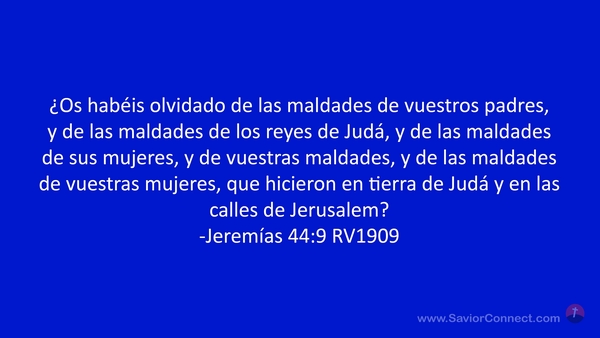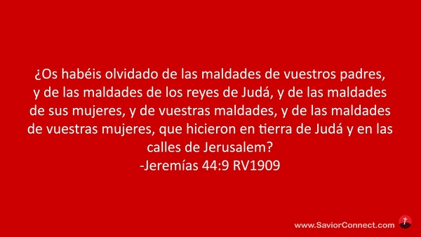 ¿Os habéis olvidado de las maldades de vuestros padres, y de las maldades de los reyes de Judá, y de las maldades de sus mujeres, y de vuestras maldades, y de las maldades de vuestras mujeres, que hicieron en tierra de Judá y en las calles de Jerusalem? -Jeremías 44:9 RV1909