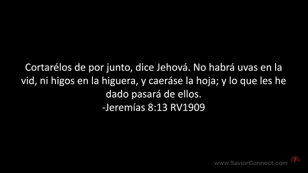 Cortarélos de por junto, dice Jehová. No habrá uvas en la vid, ni higos en la higuera, y caeráse la hoja; y lo que les he dado pasará de ellos. -Jeremías 8:13 RV1909