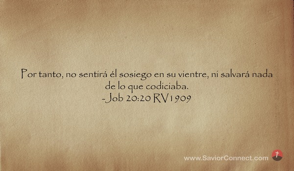 Por tanto, no sentirá él sosiego en su vientre, ni salvará nada de lo que codiciaba. -Job 20:20 RV1909