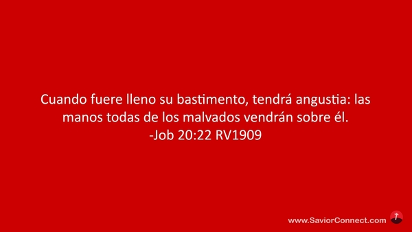 Cuando fuere lleno su bastimento, tendrá angustia: las manos todas de los malvados vendrán sobre él. -Job 20:22 RV1909
