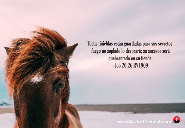 Todas tinieblas están guardadas para sus secretos: fuego no soplado lo devorará; su sucesor será quebrantado en su tienda. -Job 20:26 RV1909