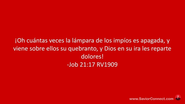 ¡Oh cuántas veces la lámpara de los impíos es apagada, y viene sobre ellos su quebranto, y Dios en su ira les reparte dolores! -Job 21:17 RV1909