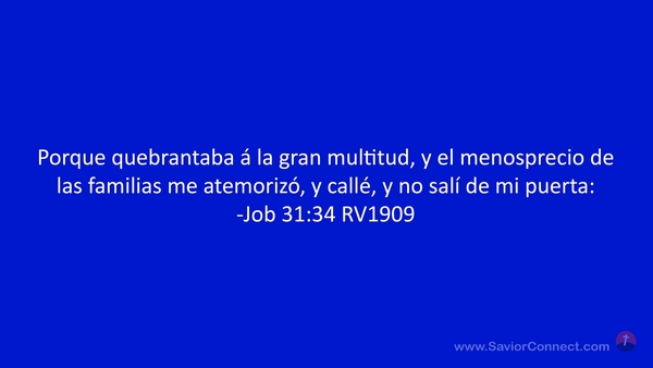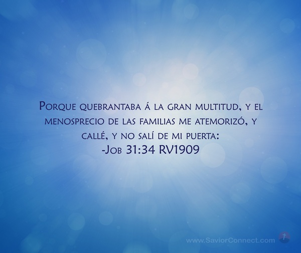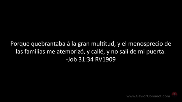 Porque quebrantaba á la gran multitud, y el menosprecio de las familias me atemorizó, y callé, y no salí de mi puerta: -Job 31:34 RV1909