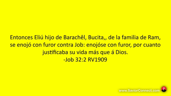Entonces Eliú hijo de Barachêl, Bucita,, de la familia de Ram, se enojó con furor contra Job: enojóse con furor, por cuanto justificaba su vida más que á Dios. -Job 32:2 RV1909
