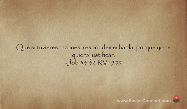 Que si tuvieres razones, respóndeme: habla, porque yo te quiero justificar. -Job 33:32 RV1909