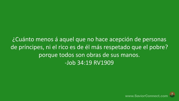 ¿Cuánto menos á aquel que no hace acepción de personas de príncipes, ni el rico es de él más respetado que el pobre? porque todos son obras de sus manos. -Job 34:19 RV1909