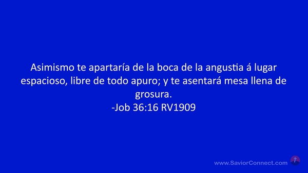 Asimismo te apartaría de la boca de la angustia á lugar espacioso, libre de todo apuro; y te asentará mesa llena de grosura. -Job 36:16 RV1909