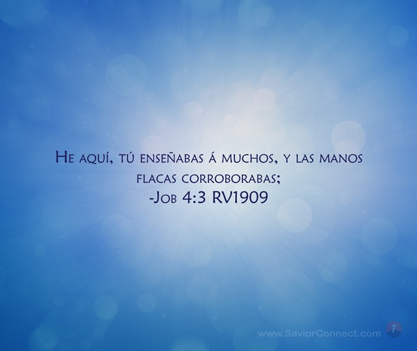 He aquí, tú enseñabas á muchos, y las manos flacas corroborabas; -Job 4:3 RV1909