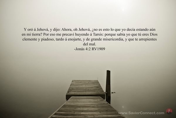 Y oró á Jehová, y dijo: Ahora, oh Jehová, ¿no es esto lo que yo decía estando aún en mi tierra? Por eso me precaví huyendo á Tarsis: porque sabía yo que tú eres Dios clemente y piadoso, tardo á enojarte, y de grande misericordia, y que te arrepientes del mal. -Jonás 4:2 RV1909