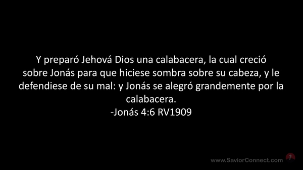 Y preparó Jehová Dios una calabacera, la cual creció sobre Jonás para que hiciese sombra sobre su cabeza, y le defendiese de su mal: y Jonás se alegró grandemente por la calabacera. -Jonás 4:6 RV1909