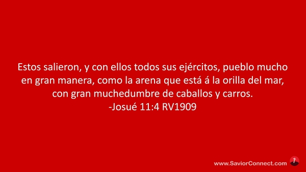 Estos salieron, y con ellos todos sus ejércitos, pueblo mucho en gran manera, como la arena que está á la orilla del mar, con gran muchedumbre de caballos y carros. -Josué 11:4 RV1909
