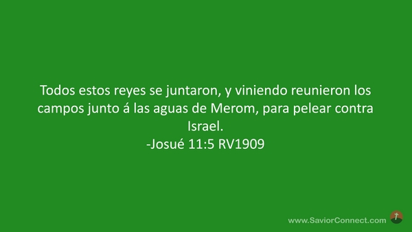 Todos estos reyes se juntaron, y viniendo reunieron los campos junto á las aguas de Merom, para pelear contra Israel. -Josué 11:5 RV1909