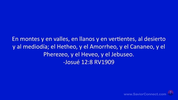En montes y en valles, en llanos y en vertientes, al desierto y al mediodía; el Hetheo, y el Amorrheo, y el Cananeo, y el Pherezeo, y el Heveo, y el Jebuseo. -Josué 12:8 RV1909
