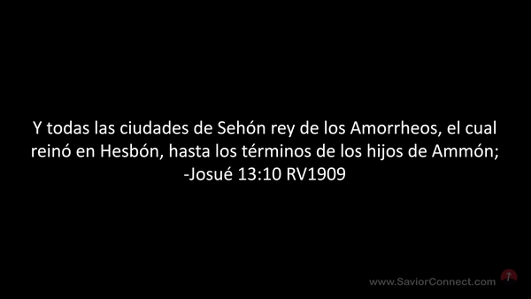 Y todas las ciudades de Sehón rey de los Amorrheos, el cual reinó en Hesbón, hasta los términos de los hijos de Ammón; -Josué 13:10 RV1909