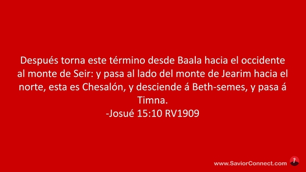Después torna este término desde Baala hacia el occidente al monte de Seir: y pasa al lado del monte de Jearim hacia el norte, esta es Chesalón, y desciende á Beth-semes, y pasa á Timna. -Josué 15:10 RV1909