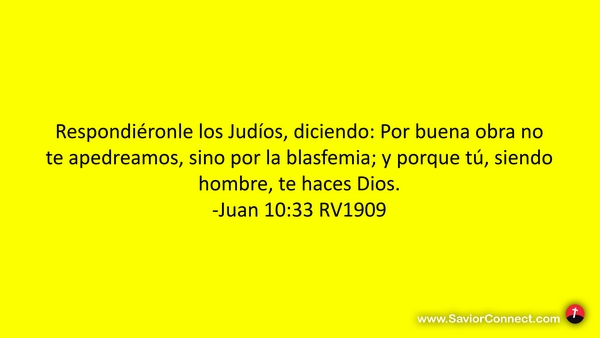 Respondiéronle los Judíos, diciendo: Por buena obra no te apedreamos, sino por la blasfemia; y porque tú, siendo hombre, te haces Dios. -Juan 10:33 RV1909