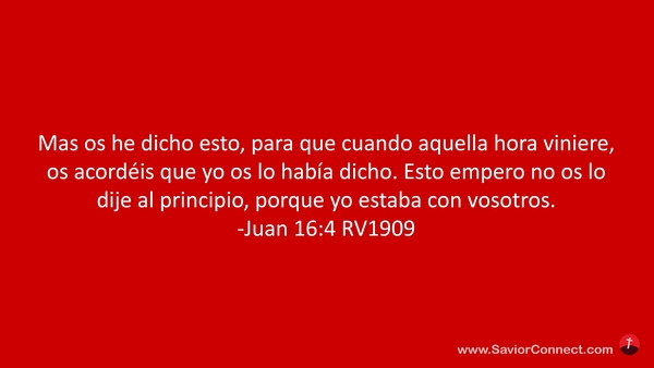 Mas os he dicho esto, para que cuando aquella hora viniere, os acordéis que yo os lo había dicho. Esto empero no os lo dije al principio, porque yo estaba con vosotros. -Juan 16:4 RV1909