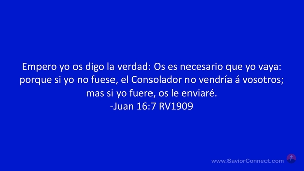 Empero yo os digo la verdad: Os es necesario que yo vaya: porque si yo no fuese, el Consolador no vendría á vosotros; mas si yo fuere, os le enviaré. -Juan 16:7 RV1909