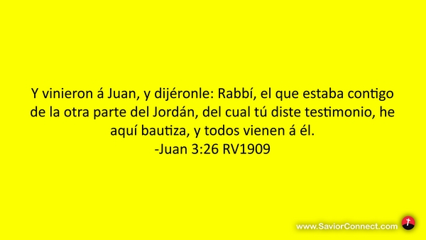 Y vinieron á Juan, y dijéronle: Rabbí, el que estaba contigo de la otra parte del Jordán, del cual tú diste testimonio, he aquí bautiza, y todos vienen á él. -Juan 3:26 RV1909