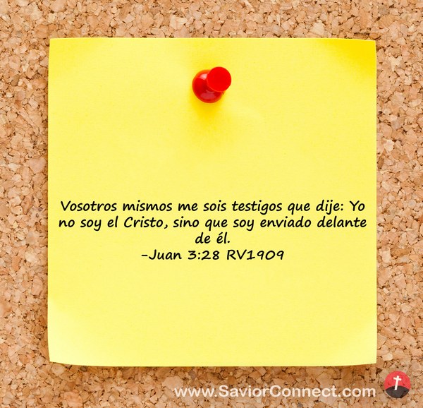 Vosotros mismos me sois testigos que dije: Yo no soy el Cristo, sino que soy enviado delante de él. -Juan 3:28 RV1909