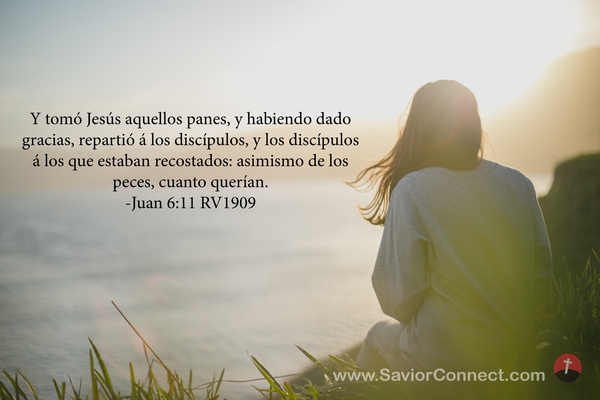 Y tomó Jesús aquellos panes, y habiendo dado gracias, repartió á los discípulos, y los discípulos á los que estaban recostados: asimismo de los peces, cuanto querían. -Juan 6:11 RV1909