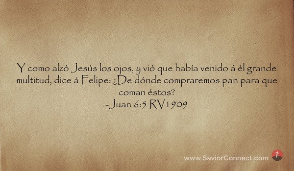 Y como alzó Jesús los ojos, y vió que había venido á él grande multitud, dice á Felipe: ¿De dónde compraremos pan para que coman éstos? -Juan 6:5 RV1909