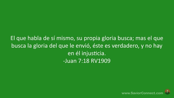 El que habla de sí mismo, su propia gloria busca; mas el que busca la gloria del que le envió, éste es verdadero, y no hay en él injusticia. -Juan 7:18 RV1909